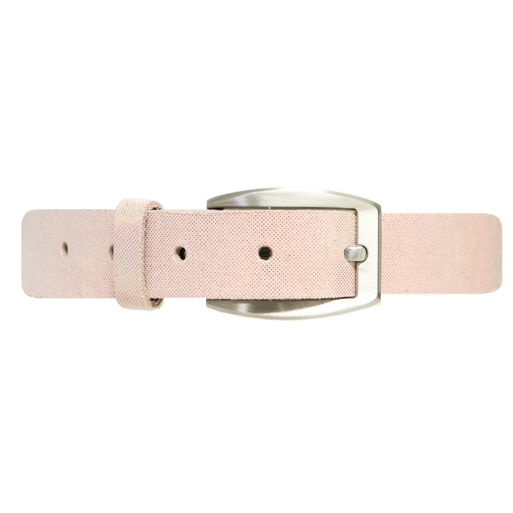 25mm damskärp i kalvläder med mattkromat spänne och läderrem med skimrande nyans.